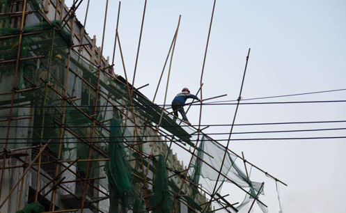 傳統(tǒng)腳手架: 操作人員多,人力成本高; 工程時間長,增加租賃成本